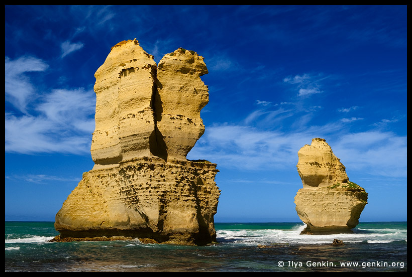 Теперь сами 12 Апостолов (Twelve Apostles), ну теперь уже 8. Самый красивый “Акулий плавник” рухнул 5 июля 2005 года. Он был той гармонией, которой сейчас уже нет. Мы оставили два вечера и утро на сьемки, но в первый и самый обалденный вечер, мы были так умотаны дорогой, что просто ехать на закат, были не в состоянии.