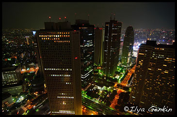 Здание Токийской Мерии (Tokyo Metropolitan Government), построенное в 1991 году по проекту знаменитого японского зодчего Кэндзо Тангэ. Башни-близнецы комплекса вздымаются на высоту 243 метра. 13 тыс. служащих управляют отсюда столицей. Вход в мэрию свободный, на 45 этаже находится смотровая площадка.