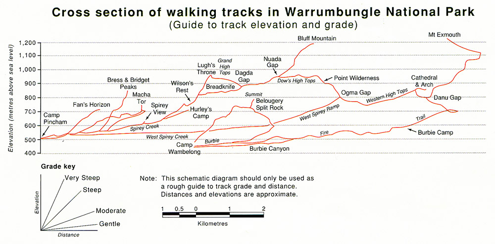 – Cхема высот и треков в Нац. парке Варрамбангл (Warrumbungle NP)