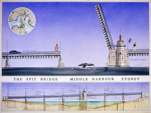 В прошлом посте, про полет над Сиднеем, я упомянула о Спит Бридж (Spit Bridge). Мосте, получившим свое название, из-за того, что он как-бы построен над косой. Если все же переводить, то название будет звучать как “Мост Коса”. Первый мост на этом месте был построен в 1924 году, а этот, разводной в 1958 году. По нему сейчас проходит автострада Варинга (Expressway Warringah) и движение довольно напряженное.