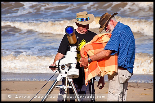 Что ж, вот уже первые “симптомы” предстоящего события. Приехавшие наблюдать за затмением начинают готовить свою аппаратуру и занимать места. Нам, сиднейцам, которые каждый год видят такой ажиотаж перед новогодним салютом, не привыкать. Занимать места с вечера, держать эти места, чтоб никто не посягнул, запастись провизией, … Мы уже готовы, теперь понаблюдаем за другими.