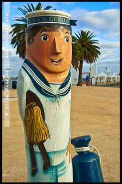 – Побетительница конкурса 1937 года – фигура из композиции «Bathing Beauties» – в 30-40гг. в Джилонге были очень популярны конкурсы красоты, «Бэйвок Боллардз» (Bollards / Швартовые Тумбы)