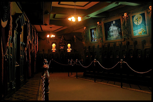 Тут мистика, ужасы, привидения и миленькое кладбище, все в этом Особняке с привидениями. Аттракцион, который может напугать детей и развлечь взрослых. Как только картины вытянутся и разверзнется потолок, обратного пути не будет! Но боятся не стоит, ведь всё путешествие по поместью вас будет сопровождать голос призрака хозяина, озвученный когда-то Полом Фрисом. И еще, в картинной галерее изображения на картинах меняются из-за освещения от вполне добрых до устрашающих. Это так интересно.