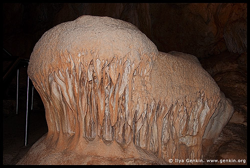 Мои две любимые пешеры это Пещера Лукаса (Lucas Cave) и Храм Ваала (Temple of Baal). Пещера Лукаса является сегодня самой популярной пещерой среди посетителей. Можно сказать, это визитная карточка Пещер Дженолан (Jenolan Caves). Особое место в Пещере Лукаса занимает так называемый «Кафедральнй Собор» – зал, более 50 метров в высоту. В нем часто проводятся бракосочетания и концерты. Так же есть зал под названием «Выставочный Зал» с одним из наиболее известных сталагнатов – «Сломаная Колонна». «Кафедральнй Собор» регулярно используется для ежемесячных виолончельных концертов и других шоу, включая концерты местной группы Didgeridoo Dingo. Обычно во время тура в Кафедральом Соборе гасится свет, включается “Адажио Альбиони” и затем включается световое шоу, подсвечивающее сталактиты – Илья Генкин