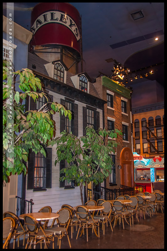 Внутри комплекса находится казино площадью 7800 квадртаных метров и имитация нью-йоркских улиц с фонарями и канализационными люками.