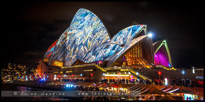 Во время трехнедельной феерии красок и света, с 27 мая по 18 июня, каждую ночь главные достопримечательности города превращаются в яркие арт-объекты. В этом году лейтмотивом шоу стала культура и традиции австралийских аборигенов. На фестивале можно увидеть работы таких художников представителей аборигенов, как Кала Диккенс, Реко Ронни, Донни Вулагуджа и других. Отражением главной идеи стал Сиднейский Оперный Театр (Sydney Opera House). В этом году световое шоу демонстрируемое на Оперный просто бесподобно!