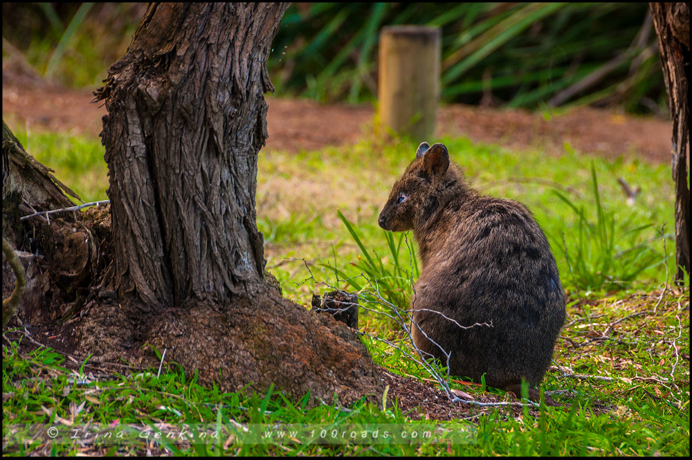 Нам посчастливилось увидеть потору Гилберта около парковки. Мне, правда показалось, что она слепая. Такое случается, когда животное переживает лесной пожар. Яркий свет пламени ослепляет ночное животное.
