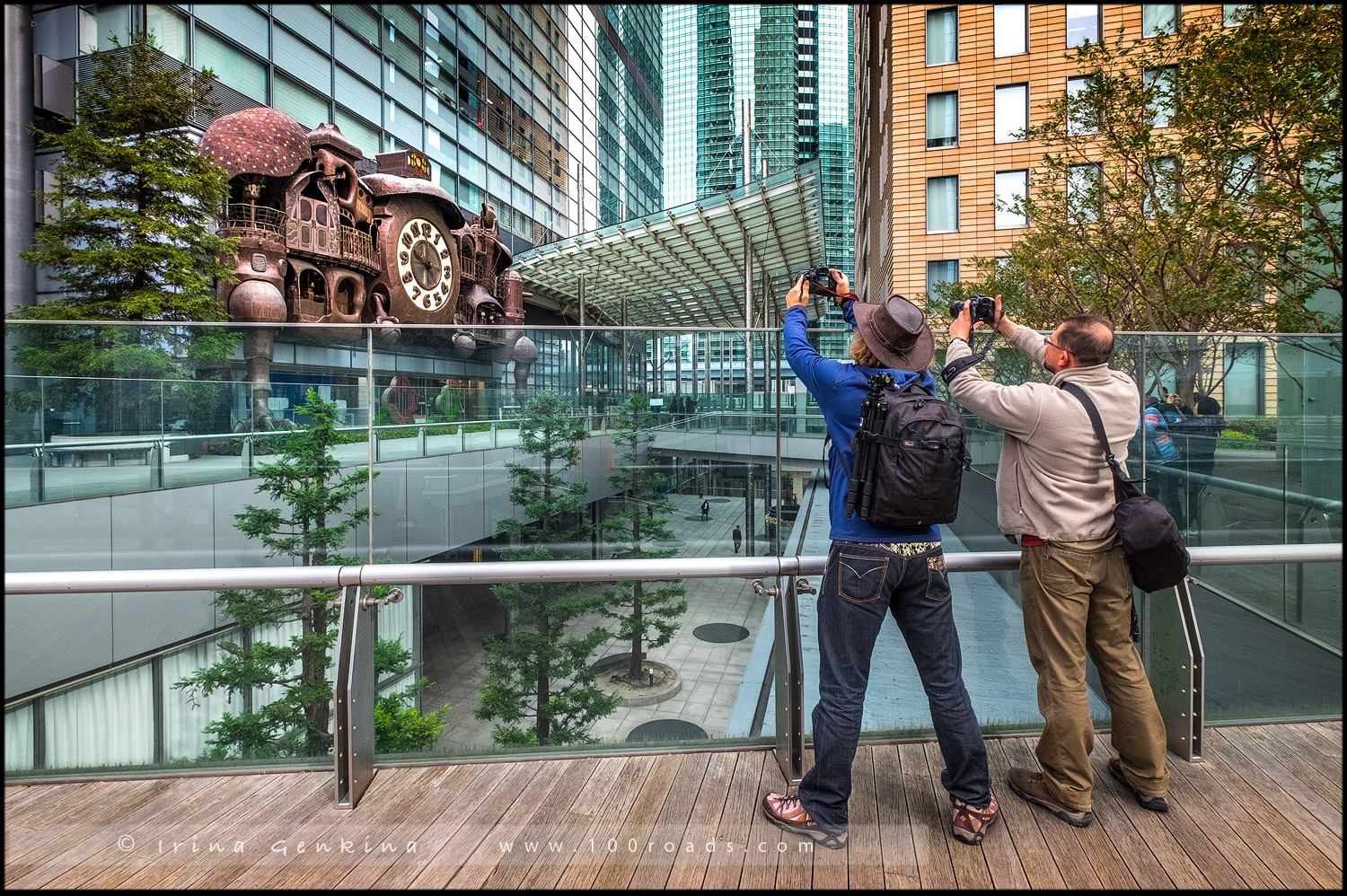 Около Сада Хамарикю (浜離宮 / Hamarikyu Garden) есть много интересных мест, так одно из первых, перед тем как мы посетили сад – «Гигантские часы Гибли» (Giant Ghibli Clock). Правда, начинать фото-экскурсию в 9 утра непростительно поздно, но так сложились обстоятельства.