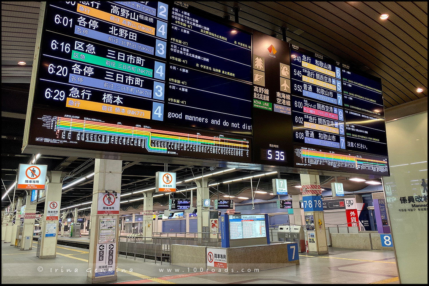 Прямой поезд ходит не так часто. Первый поезд, на который мы и планировали попасть идет в 6:00, это самый удобный в будний день, следующий в 8:42 (¥ 2,180) или с пересадкой на станции HASHIMOTO (WAKAYAMA), правда, по цене разницы нет – ¥1,390 в одну сторону. (подробней о расписании >>). На момент нашей поездки kombo-pass стоил ¥2,860, в который входили – билеты туда и обратно от Осаки, фуникулер и проезд на автобусе на Коя-сан (高野山).