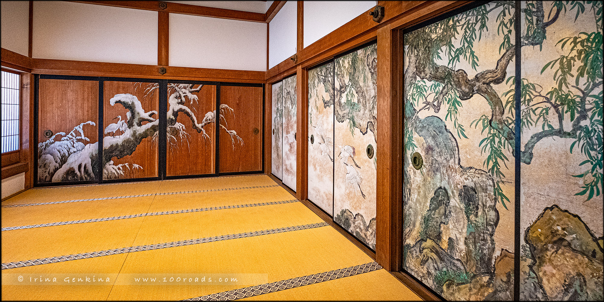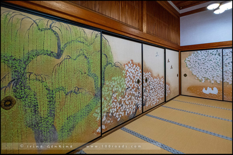 Как видите храм, это еще и художественная галлерея, т.к. на раздвижных дверях (фусума) картины известных мастеров разных времен, в одних есть символизм, в других повествование.