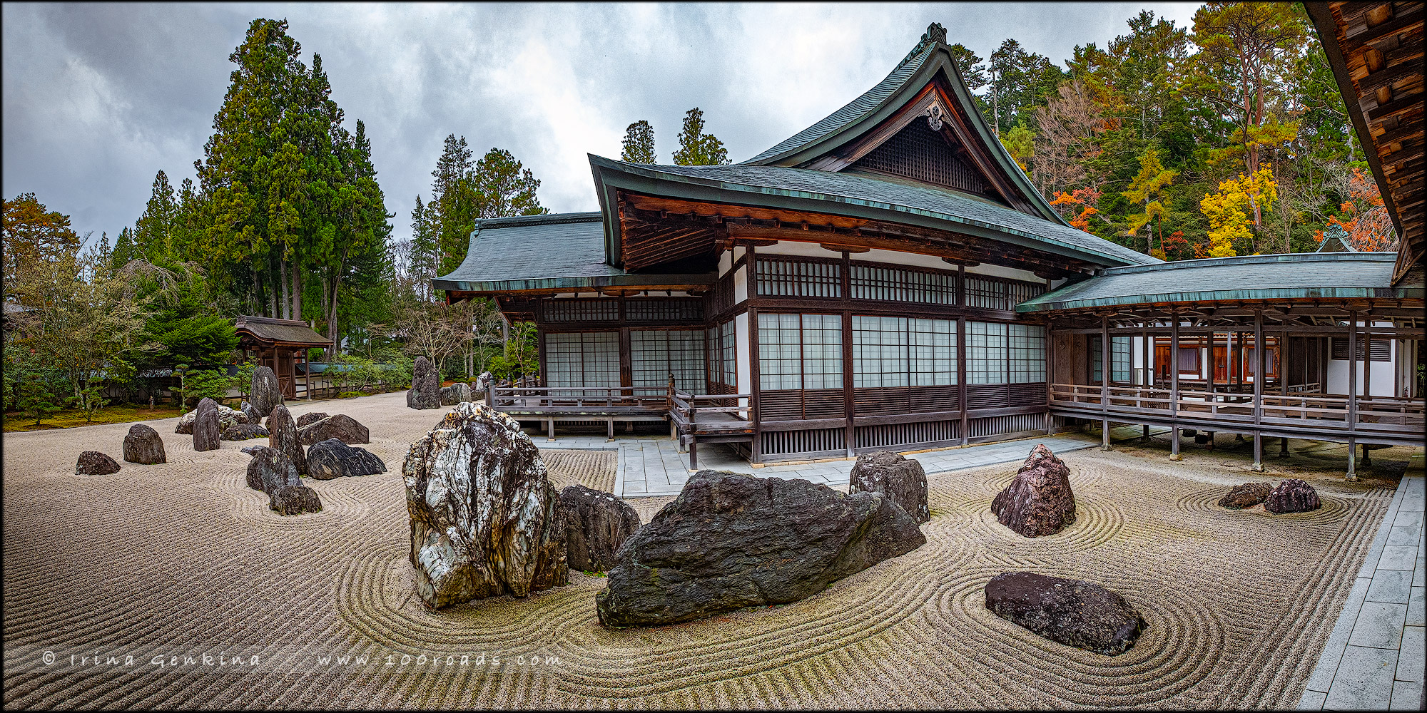 Продолжу свое повествование о пребывании на Коя-сан (高野山). Так среди святынь, храмов и гробниц, разбросанных по всему городу, храм Конгобу-дзи (金剛峯寺 / Kongobu-ji) выделяется как одно из самых внушительных строений. Хотя, это одно из новейших архитектурных дополнений – его последняя итерация была проведена в 1869 году, – он стал главным храмом буддизма Сингон, эзотерической секты, основанной тут.