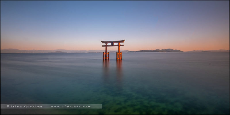 Очень популярен этот мистический пейзаж ворот храма Ширахиге у берега озера Бива, называемый «Оми но Ицукушима», напоминающий ворота синтоистского храма Ицукусима, внесенный в список Всемирного наследия. Правда, это была альтернатива закрывшимся на ремонт знаменитых ворот храма Ицукусима (Itsukushima Shrine / 厳島神社), что на острове Миядзима (Miyajima/宮島).