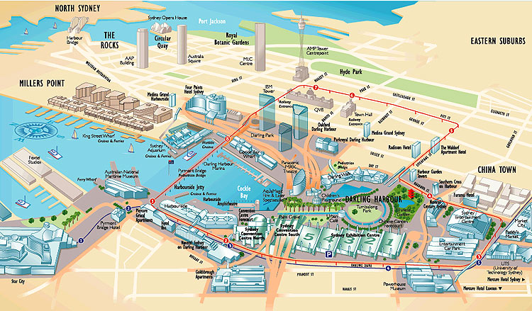 Карта-схема района Дарлинг Харбор (Darling Harbour) (jpg 144Kb)