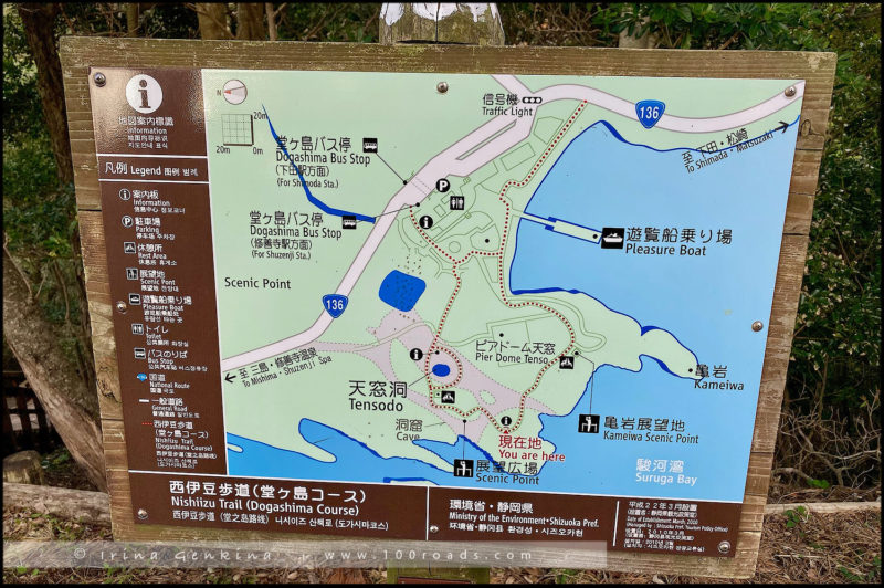 Немного отойду от темы повествования. Когда я готовилась к поездке, то материала по западному побережью полуострова Идзу нашла крайне мало. В основном это были туристические сайты на японском и описания отдыха в Dogashima. Т.е. если вы пользуетесь только общественным транспортом, то можно ограничится посещением одной Dogashima, о красотах которой я расскажу сейчас, хотя мы посетили это место ближе к вечеру.