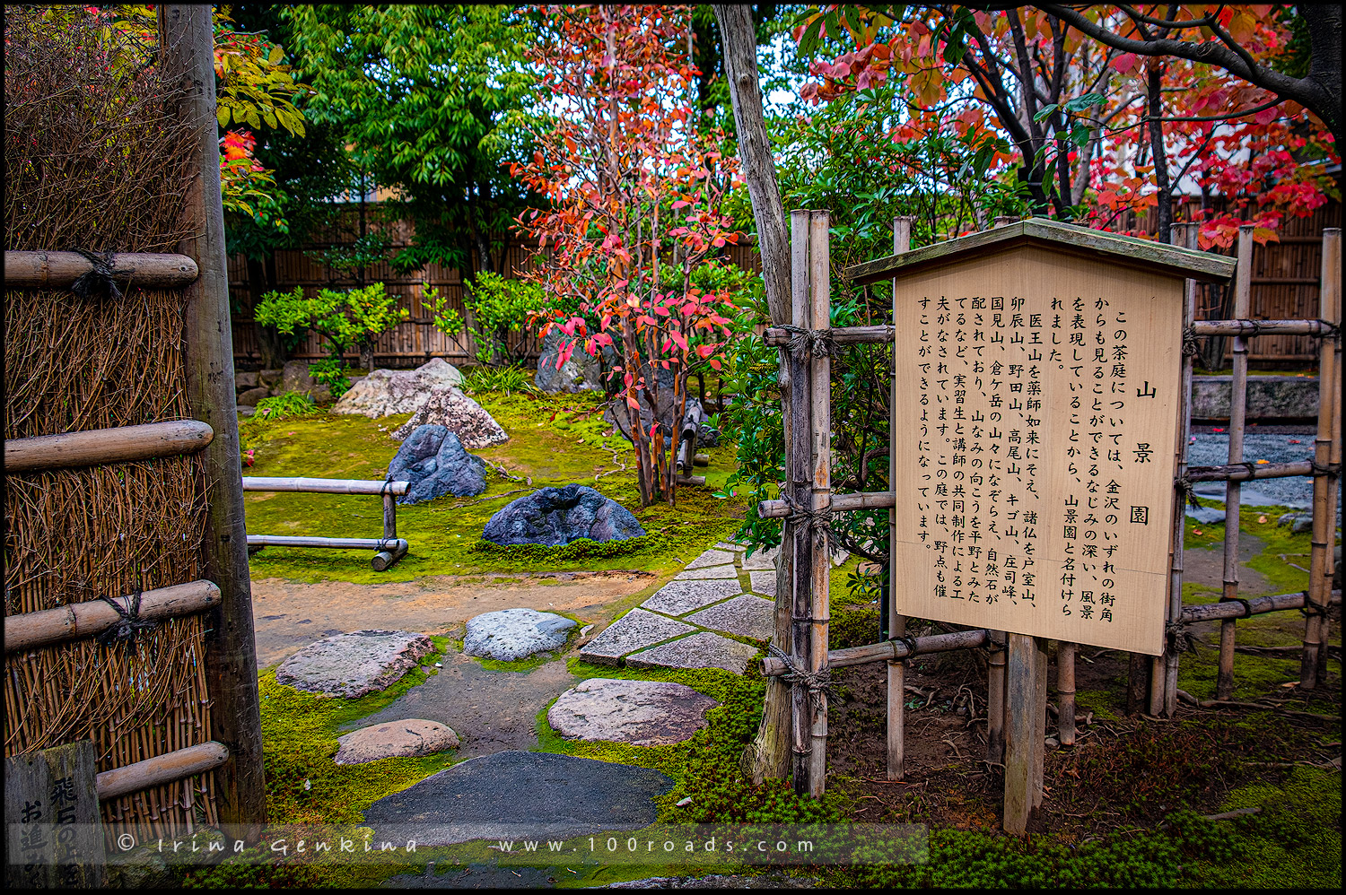 Дом самураев Номура (Nomura Samurai House & Garden) – одна из главных достопримечательностей этого района. Дом принадлежал Номура Денбей Нобусаде, богатой семье самураев, которая служила правящей семье Маэда с 16 века до конца периода Эдо в середине 19 века. Ну и как вы знаете, в эпоху Мэйдзи старый социальный класс самураев был упразднён и многие дома самураев были разрушены. Семье Номура также пришлось продать много своей собственности, и этот дом начал разрушаться. Состоятельный бизнесмен по имени Кубо Хикобэй купил эту собственность в начале 20 века. Гостиная в нынешнем доме – это та, которую он перенес сюда из старого дома в сельской части префектуры Исикава. Он также добавил к зданию чайную. Сегодня дом принадлежит городу и был прекрасно отреставрирован, чтобы посетители могли увидеть домашнюю жизнь самураев.