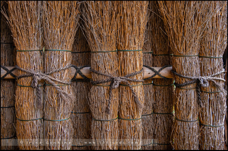 Желто-коричневые каменные и глиняные стены вдоль улиц превращают район в крепость . Все ворота в жилые дома за этими стенами тщательно сконструированы, чтобы быстро и надежно закрываться в случае нападения. Стены района зимой покрыты слоями рисовой соломы, чтобы защитить внешнее покрытие от более суровых снежных бурь. Их появление в начале декабря говорит о приближении зимы.
