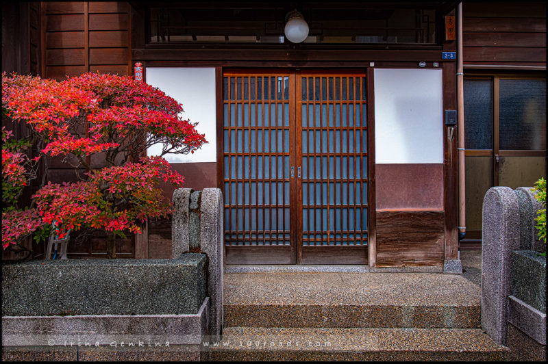 Надо сказать, что улицы тут строились согласно боевому искусству Косю, одной из боевых наук, согласно которой специально строились тупики и Т-образные дороги повсюду, чтобы парализовать чувство направления и безопасности. Это и создает неповторимый антураж района Нагамати (Nagamachi).