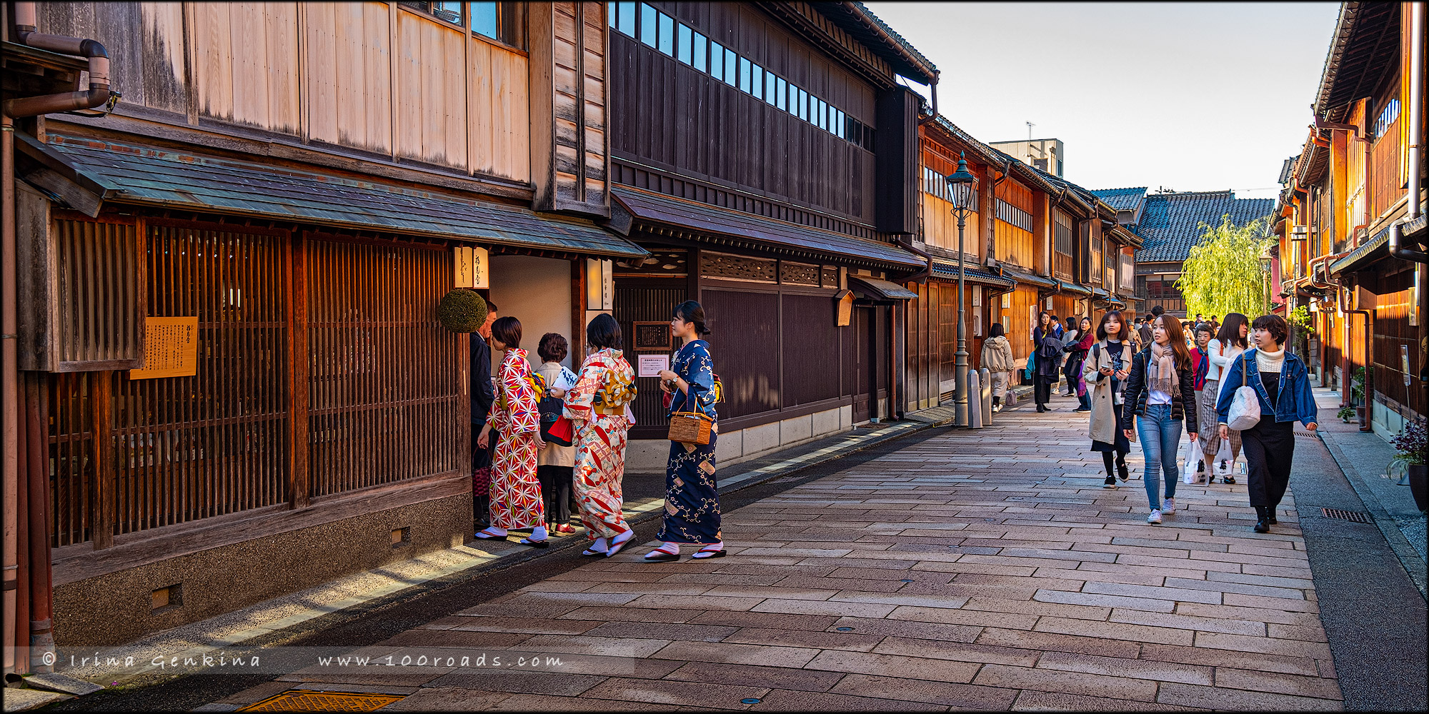Этот район состоит из главной улицы самых известных чайных домов в Канадзаве, окруженной несколькими районами ремесленников, художников и кафе. Величественные деревянные особняки и мощеные улочки создают то, что называют «Старым городом» Канадзавы. Ведь все, было спроектировано так, чтобы доставить удовольствие представителям купеческого сословия и потомкам самураев. Впрочем, сейчас и просто гости города могут насладится красотой района и предлагаемыми развлечениями.