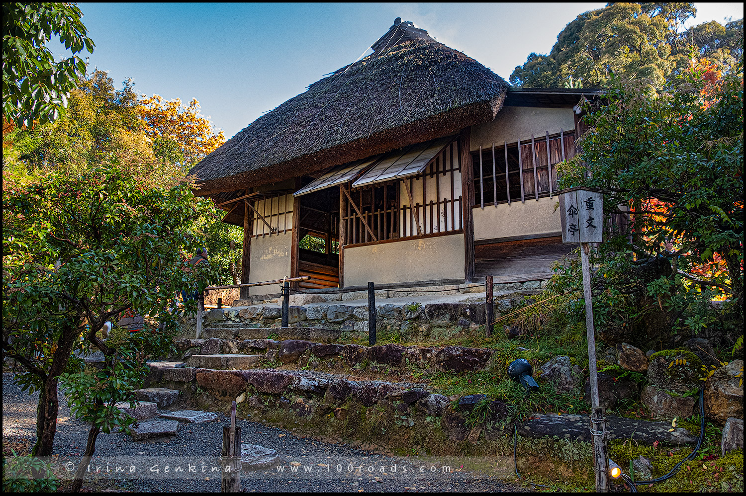 Надо сказать, что три чайных павильона в рустикальном стиле, расположенных на территории храма, спроектировал сам Сэн-но Рикю, вернее, они сделаны по его канонам. Сэн-но Рикю основоположник чайной церемонии, поэтому, я так хотела посетить этот храм.