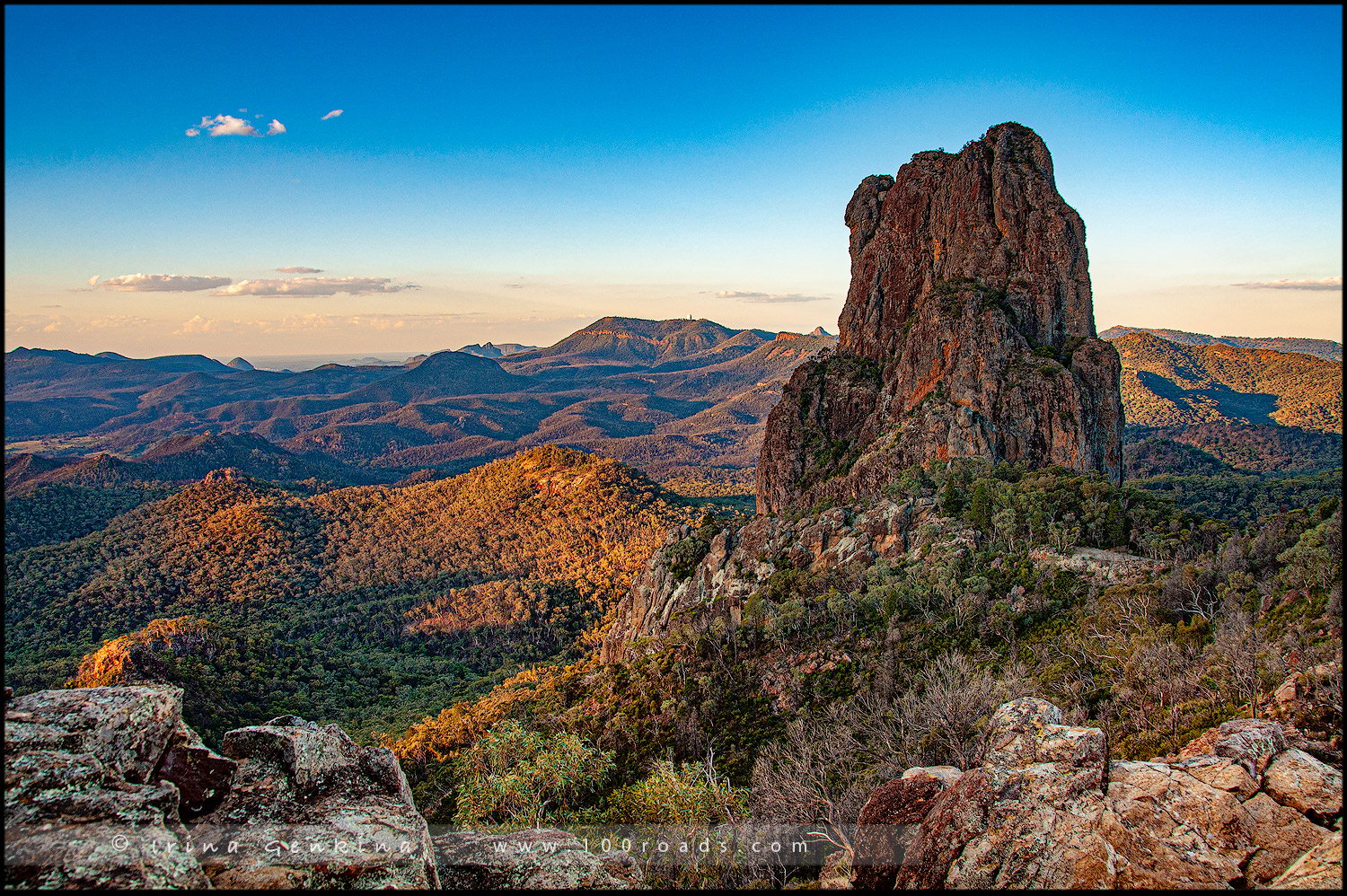 Трек Breadknife и Grand High Tops Walk – это лучший маршрут в национальном парке, так как можно увидеть 360-градусный обзор парка Варрамбангл. 13-километровая кольцевая тропа предлагает насладится знаменитыми формациями Belougery Spire, Bress Peak и Crater Bluff, напоминающие нам о древней деятельности вулкана, с разных ракурсов, но вид сверху просто завораживает! Прогулка занимает от 4 до 5 часов, так что если снимать красоты на закате с высоты, то выходить надо за 2 -2,5 часа и не забыть взять теплую одежду.