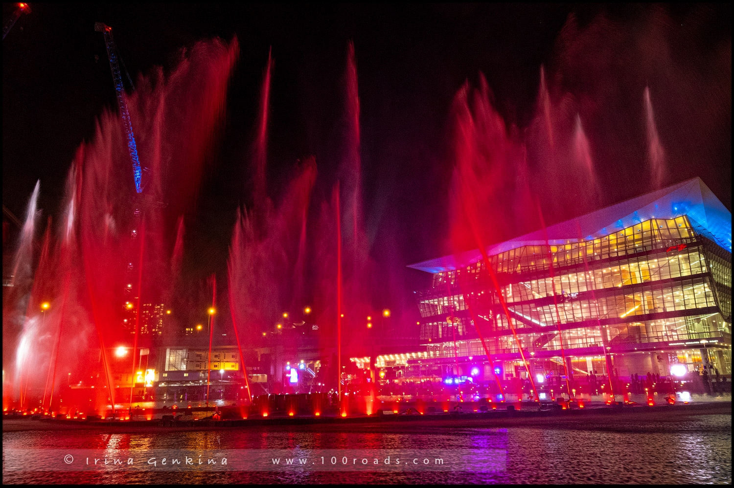 Плавучая установка в форме бесконечности состоит из более чем 250 метров роботизированных фонтанов, которые могут выбрасывать в воздух удивительные ДЕВЯТЬ тонн воды всего за ОДНУ секунду! При одновременном освещении тысячами мощных светодиодов внезапно возникает фантастический танец воды и света в шоу, которое повторяется каждые 10 минут.