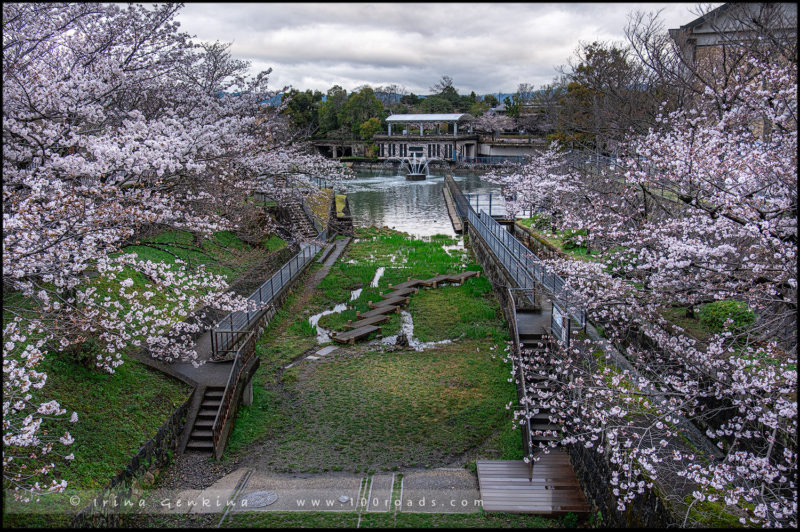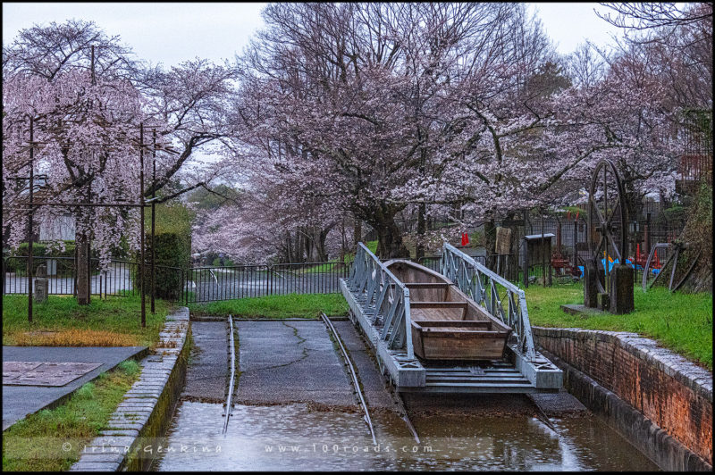 Первый мой пункт – Уклон Кеаге (蹴上インクライン) – старый железнодорожный путь длиной 582 метра, который раньше служил водным транспортом канала озера Бива между Оцу (大津) и Киото с 1891 по 1948 год. Теперь это место является популярным местом для наблюдения за цветением сакуры, где растут более 90 вишневых деревьев Ёсино и горной вишни, и где посетители могут прогуляться в приятной атмосфере.