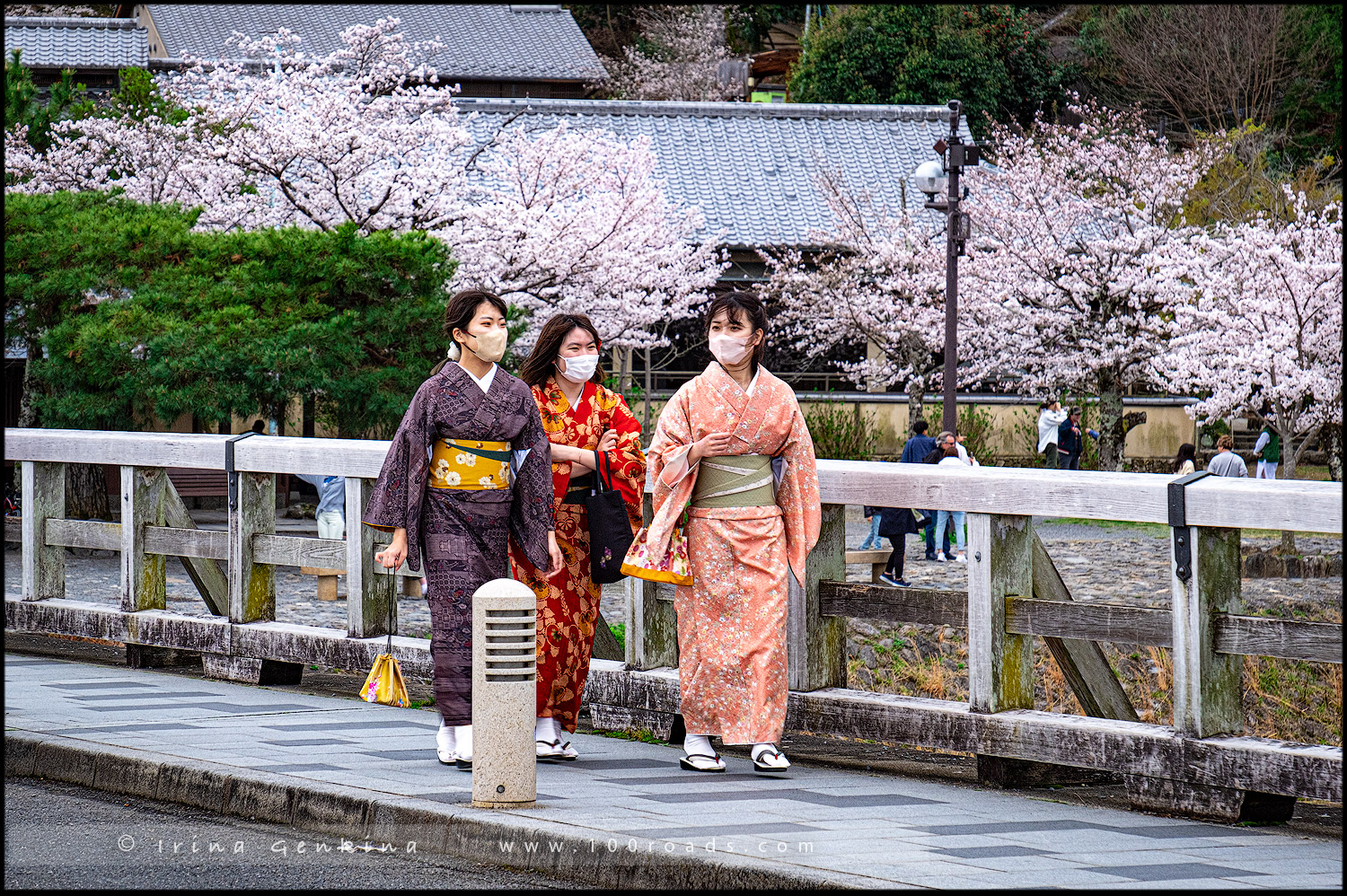 Когда кто-то едет в Японию, то почти всегда в маршруте путешественника стоит Киото, а по возращении всегда спрашивают – «О! Киото! А вы ездили в Арасияму? Это ведь рядом.». Путешественник конечно отвечает, что ездил. Арасияма прекрасна в любое время года, но осенью и весной тут просто живой поток. Все хотят полюбоваться осенними красками и бело-розовой дымкой ажурных вишневых деревьев в этом, на весь мир известном, районе.