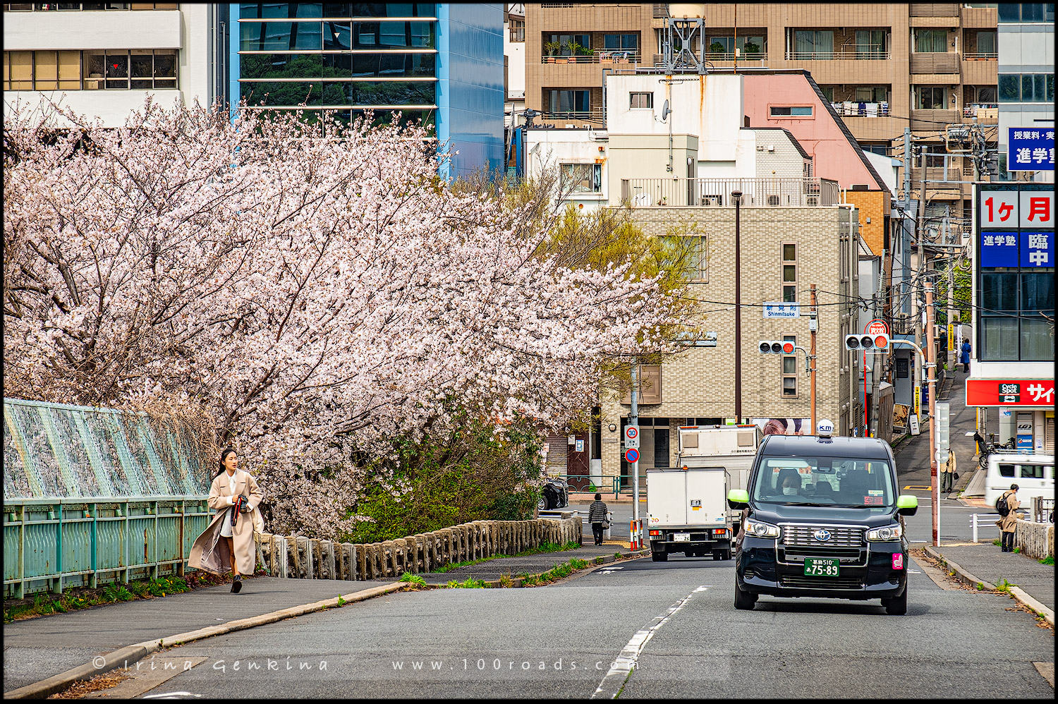 Канал, вдоль которого и растут эти вишневые деревья, когда-то был внешним рвом замка Эдо. Потом был преобразован в водный путь. Теперь в южной части канала расположен Парк Сотобори (Sotobori Park).