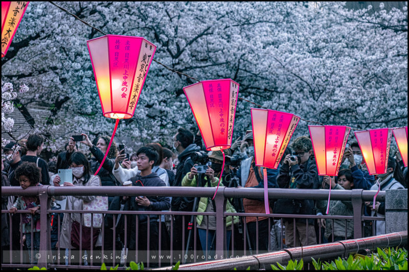 Река Мэгуро (Meguro River / 目黒川) сейчас является одним из лучших мест для наблюдения за цветущей сакурой в Токио. Когда солнце садится, бумажные фонарики, развешанные вдоль реки, загораются во время фестиваля сакуры.