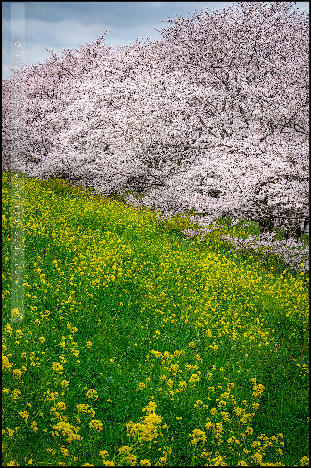 Кумагая Сакура Цуцуми (熊谷桜堤) стало нарицательным местом для наблюдения за цветением сакуры в эпоху Эдо (1603-1868). Светло-розовые цветы сакуры и ярко-желтые цветы рапса, покрывающие берег реки Аракава на протяжении 2 км, создают великолепную картину.