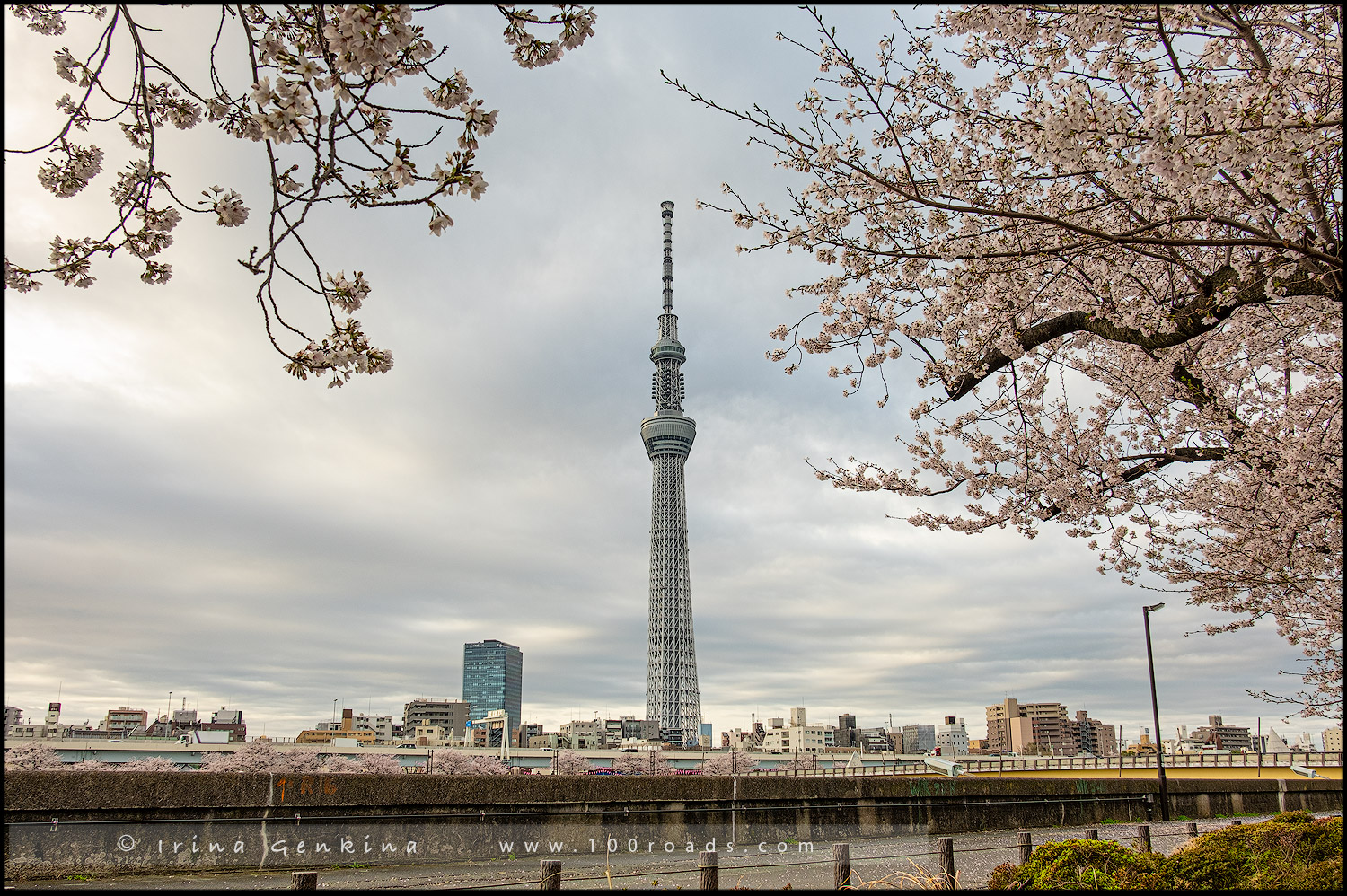 Около 1000 вишневых деревьев высажены по обеим сторонам реки и простираются примерно на 1 км. Это популярное место для любования цветущей сакурой, так как вместе можно полюбоваться потрясающим видом на Tokyo Skytree.