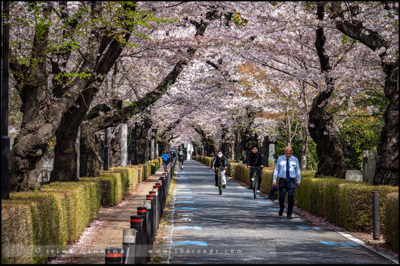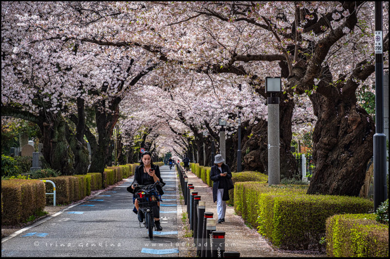 Лучшее место тут – это дорога, которая проходит через середину кладбища Аояма, протяженностью 1,7 километра. Ряд вишневых деревьев, большинство из которых старше 70 лет, выстраиваются вдоль улицы. В некоторых местах цветущие ветви настолько густы, что почти образуют туннели. В других районах, старые деревья разбрасывают свои огромные ветви над могилами. Они замечательные.