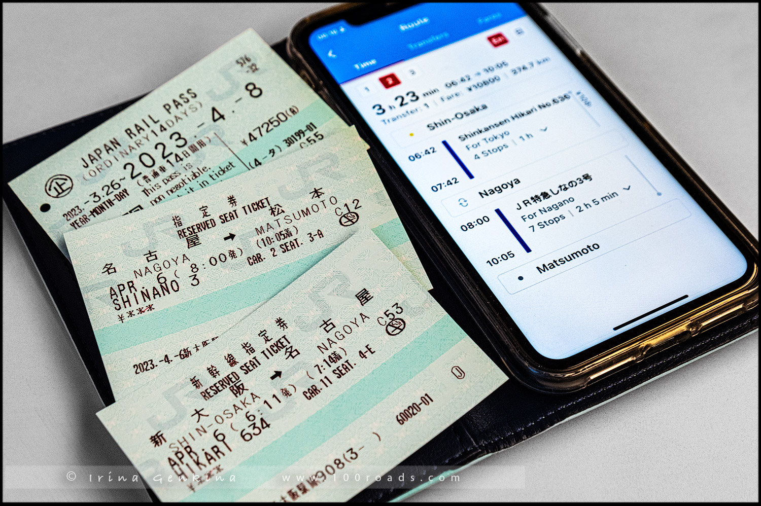 (12:53) Matsumoto – (15:01) Nagoya (15:19) – (16:27) Shin-Osaka  – 3h 34min / ¥10,800