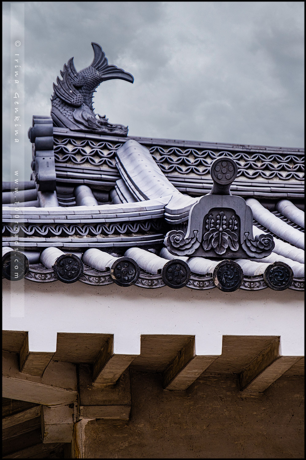 Замок имеет уникальную архитектуру, аналогов которой не существует в других местах в Японии – кроме настеленного прохода на крыше между Главной башней и Inui Kotenshu, башня связана с двумя другими зданиями – Tatsumitsuki-yagura (Южная башня) и Цукими-ягура (Tsukimi-yagur или Павильон любования луной на плане Замка (6).