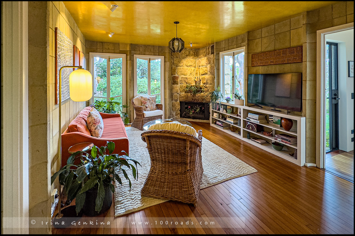 Следующий дом, который мы осмотрели снаружи был THE JOHNSON HOUSE (4 The Parapet). Построенный в 1922 году Гриффином для миссис Эллиот Джонсон (Mrs. Elliot Johnson), это единственный его дом в Castlecrag с покатой черепичной крышей в оригинальном дизайне.