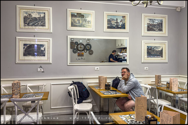 За 17 евро нам принесли кофе и Cornetto с фисташковой начинкой – вкус, который теперь навсегда будет ассоциироваться с утром в Риме. Провели мы там около сорока минут, наслаждаясь редкой возможностью посидеть без спешки. А потом – обратно к Пантеону, навстречу дневному шуму и новому слою городской истории.