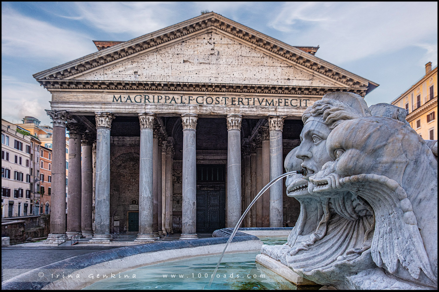 Первый Пантеон возник здесь ещё в 27 году до н.э., построенный полководцем Марком Агриппой, зятем и ближайшим соратником императора Августа. Именно его имя – M·AGRIPPA·L·F·COS·TERTIVM·FECIT («Марко Агриппа, сын Луция, построил во время своего третьего консульства») – высечено на фронтоне и до сих пор вводит в заблуждение: многие думают, будто нынешний храм построен именно тогда. Но это дань традиции. Реальность иная.