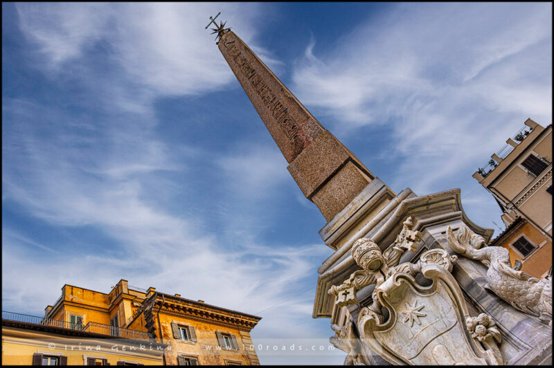 Много столетий спустя, в 1374 году, его вновь обнаружили – поверженным, разбитым, полуутонувшим в земле. И только в XVIII веке, по приказу папы Климента XI, его подняли из забвения. Архитектор Филиппо Баригионе восстановил и укрепил его, водрузив на постамент в центре фонтана на Пьяцца делла Ротонда, прямо напротив Пантеона.