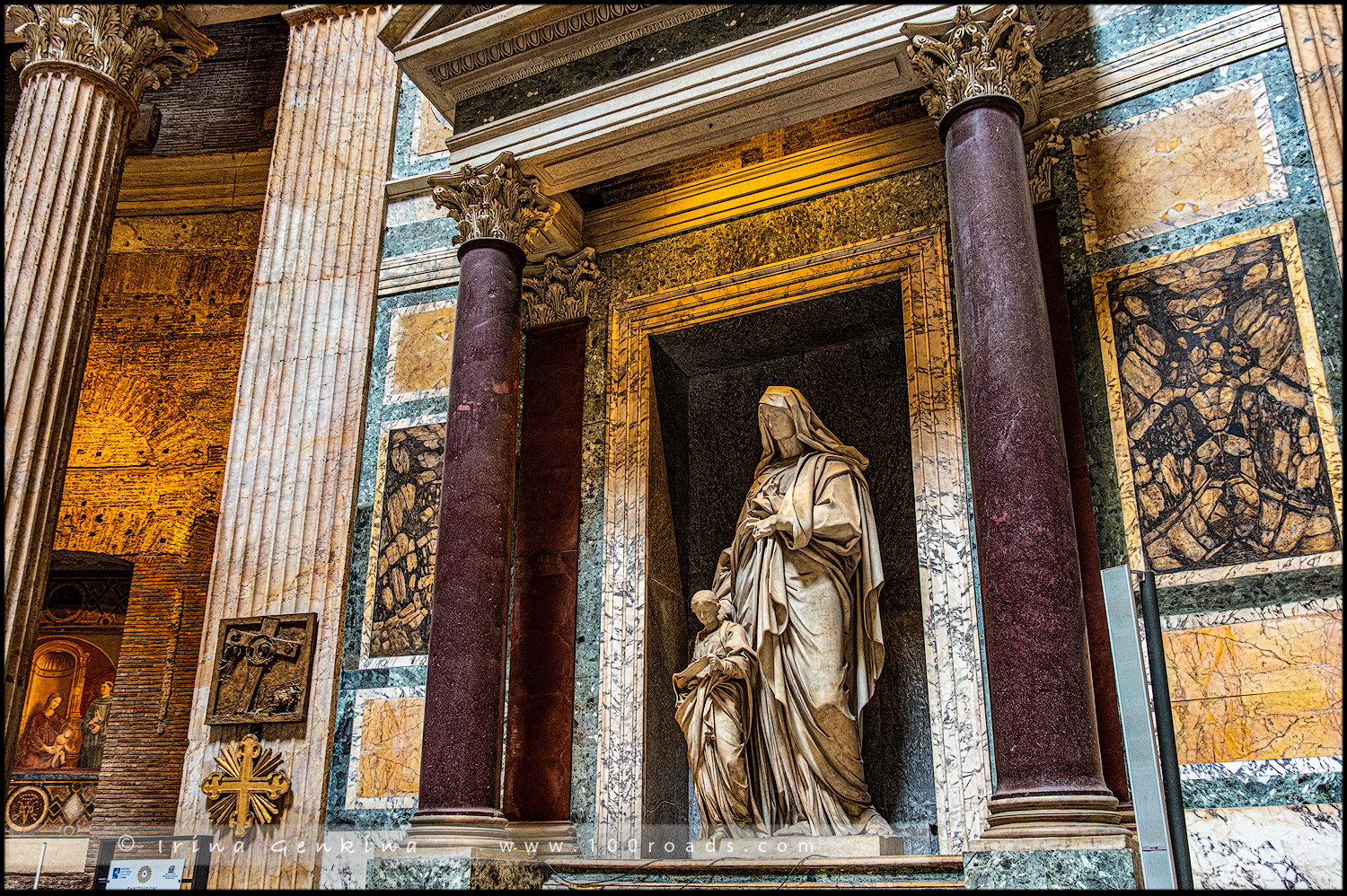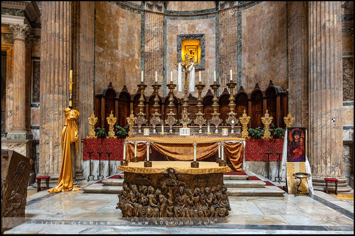 Внутри Пантеона мы провели около часа – как всегда, сложно уйти сразу. Купол, световой столб под окулюсом, мраморный пол, вечная тишина, даже при большом числе посетителей. Храм всех богов держит грандиозную паузу между эпохами – и тебя в том числе.