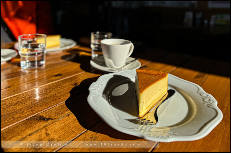 9:15 – Зашли в кафе Doremifa-sora (どれみふぁ空), что рядом. Сегодня воскресенье и оно открылось в 8:30. Заказали местный знаменитый чизкейк и по чашечке кофе (1,840 йен). Уютно и тепло тут. Ещё можно в окошко понаблюдать за птицами.