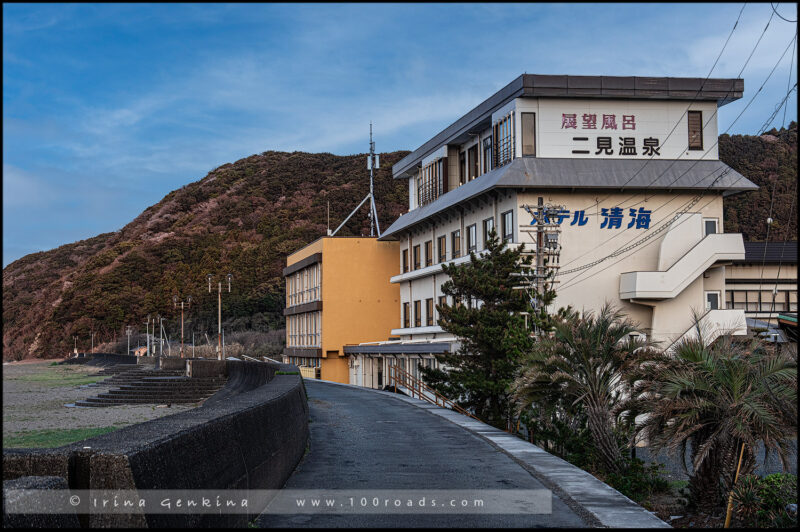 Как и последний раз, когда мы посещали район Футами-но-ура, мы остановились в Онсэне Hotel Seikai. Онсен расположен буквально на берегу залива Исэ, в районе Футами – в пешей доступности от Меото Ива (примерно 10–15 минут). Это классический японский рёкан с онсэном, где акцент сделан на тишине, воде и ритуале отдыха. Он единственный отель в этом районе, у которого есть собственный источник термальной воды.